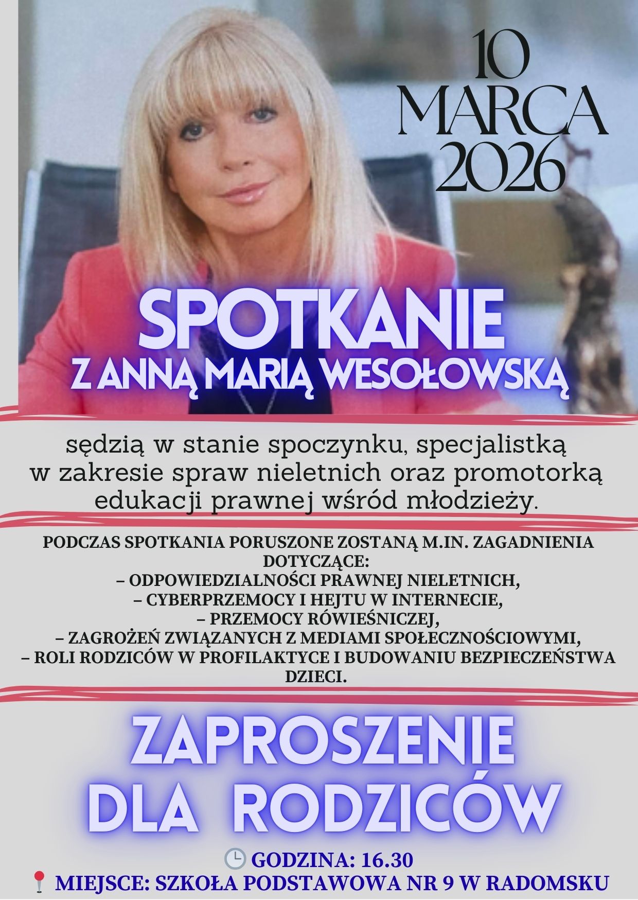 Szkolna grupa teatralna FRYKAS zaprasza rodziców, uczniów oraz wszystkich sympatyków PSP nr 9 , na przedstawienie pt. "Królewna Śnieżka i siedmiu krasnoludków". Odbędzie się ono 4 marca 2026r. o godzinie 16.30 w szkolnej sali gimnastycznej. Serdecznie zapraszamy!
